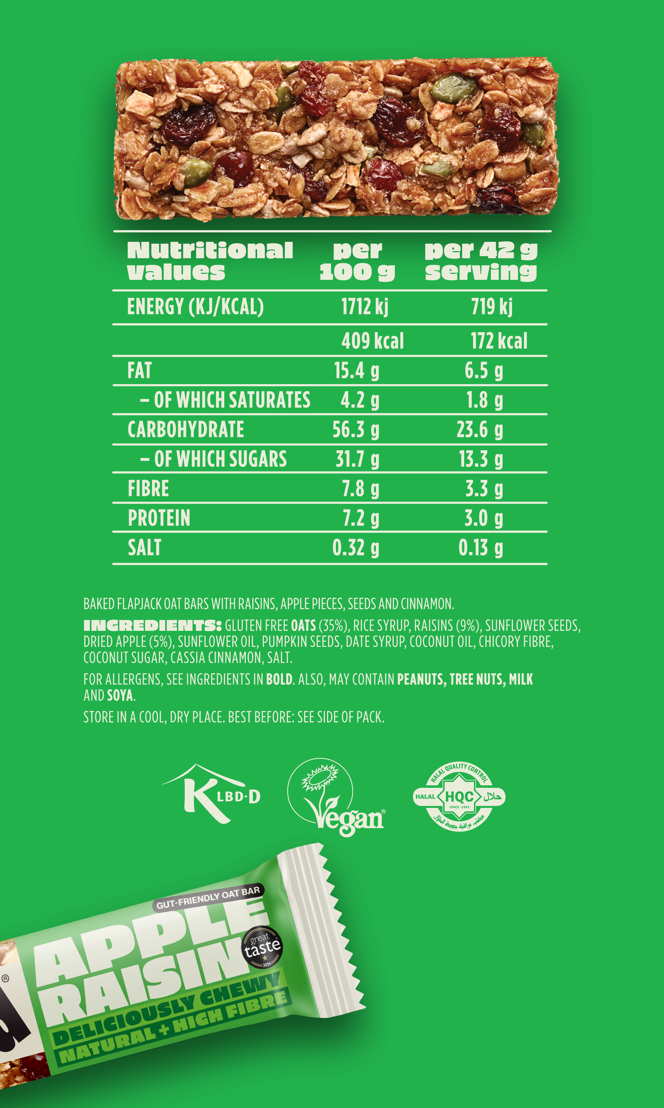 APPLE & RAISIN GUT-FRIENDLY OAT BARS (16 PACK)