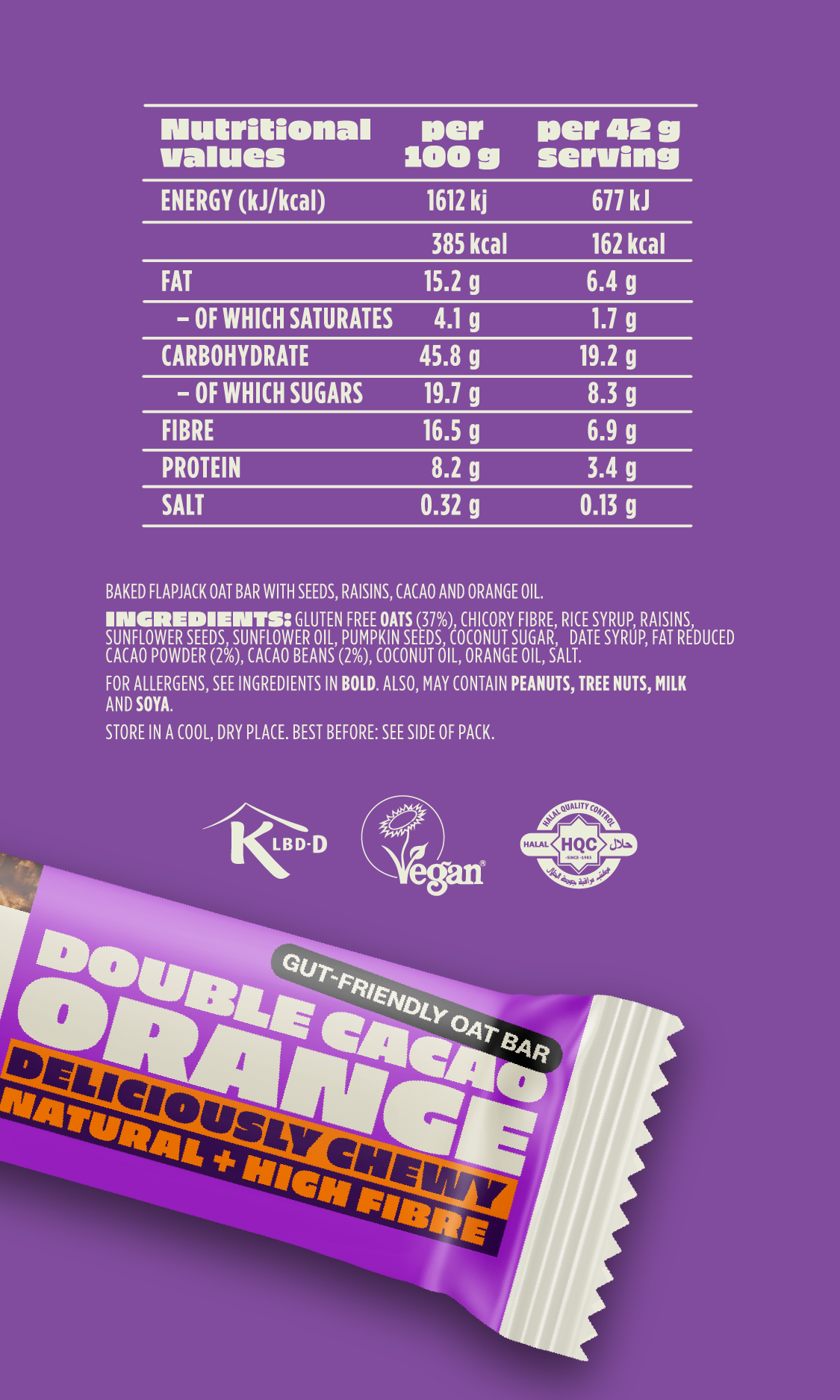 Double Cacao & Orange Gut-Friendly Oat Bars (16 pack)